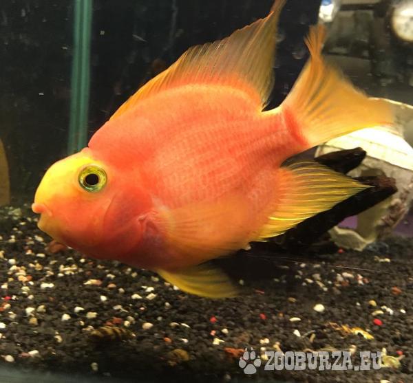 Beschreibung: Barsch, männlich, Warmwasserfisch. Gebe aus meinem Aquarium einen schönen, ca. 15 cm großen, Papageienbuntbarsch ab.